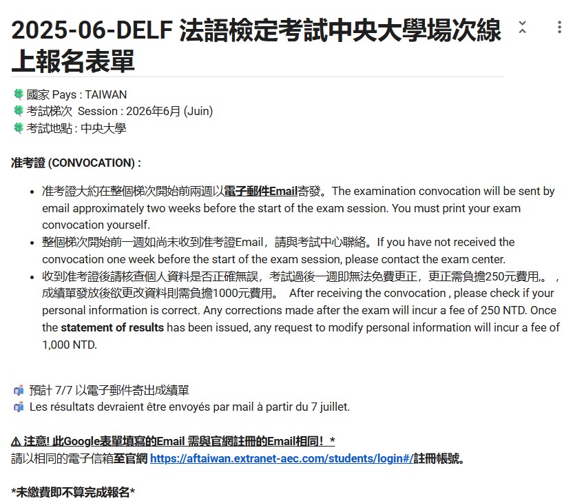 2026法語檢定DELF中央大學場次開放報名! (僅開放中央學生)